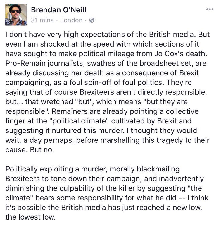 “The line of questioning put to Owen Jones would never have been put to a black or Jewish person if one of their venues had been attacked in this way.